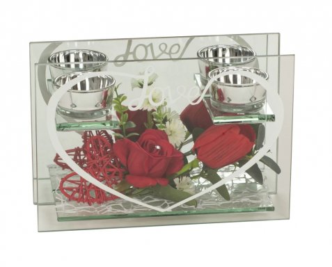 glazen decoratie met rode roos